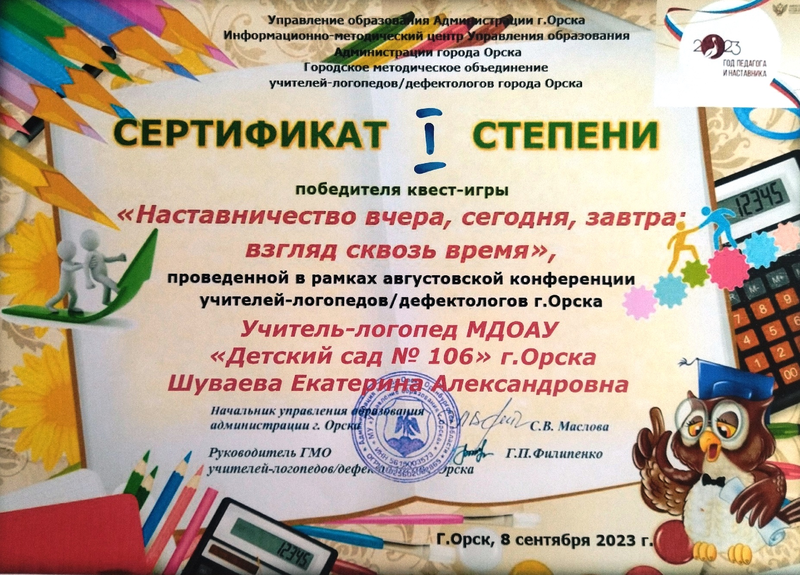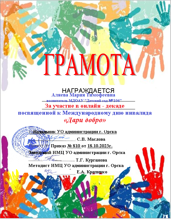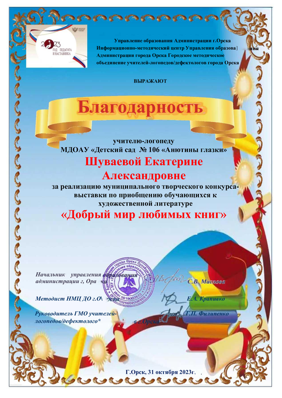 Шуваева Е.А. - Благодарность за организацию и проведение Муниципального творческого конкурса – выставки «Добрый мир любимых книг»
