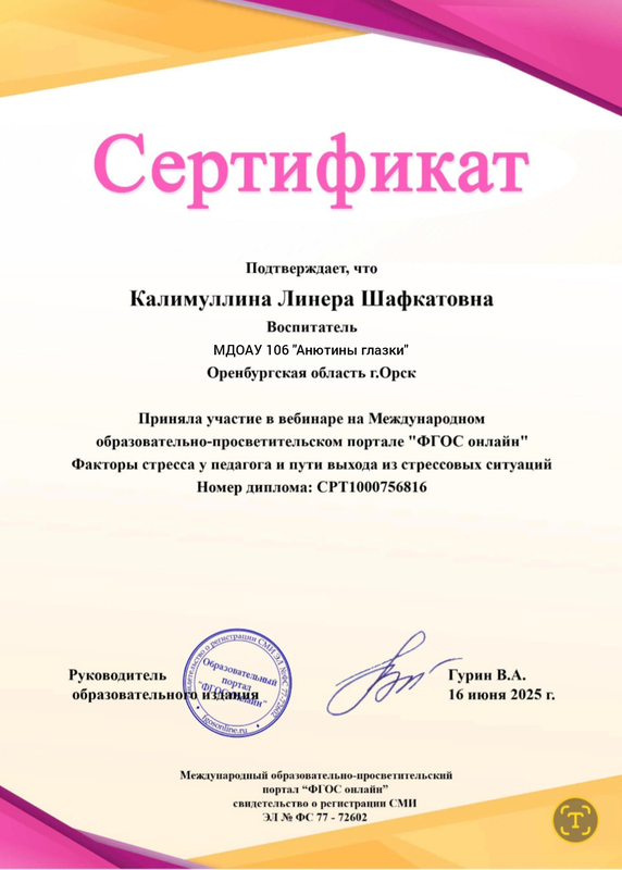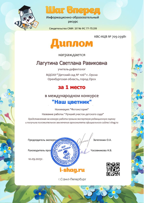 Лагутина С.Р. - диплом за 1 место в международном конкурсе "Наш цветник"