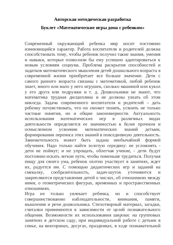 элементарных математических представлений у дошкольников с помощью дидактических игр и занимательного материала»